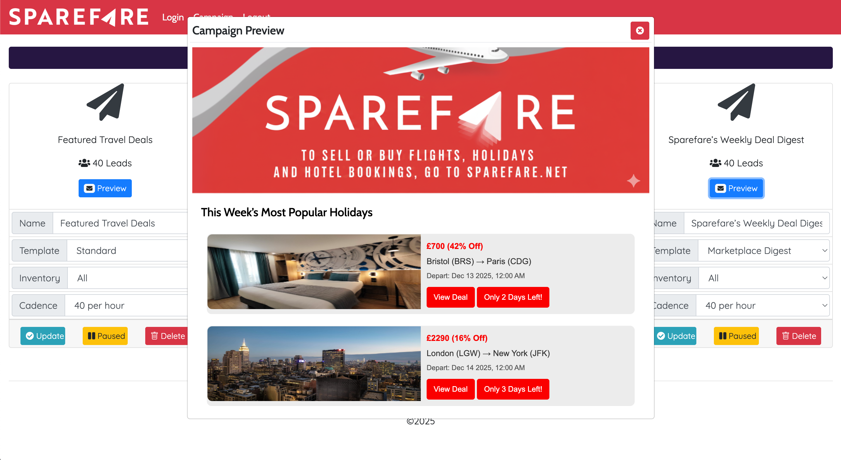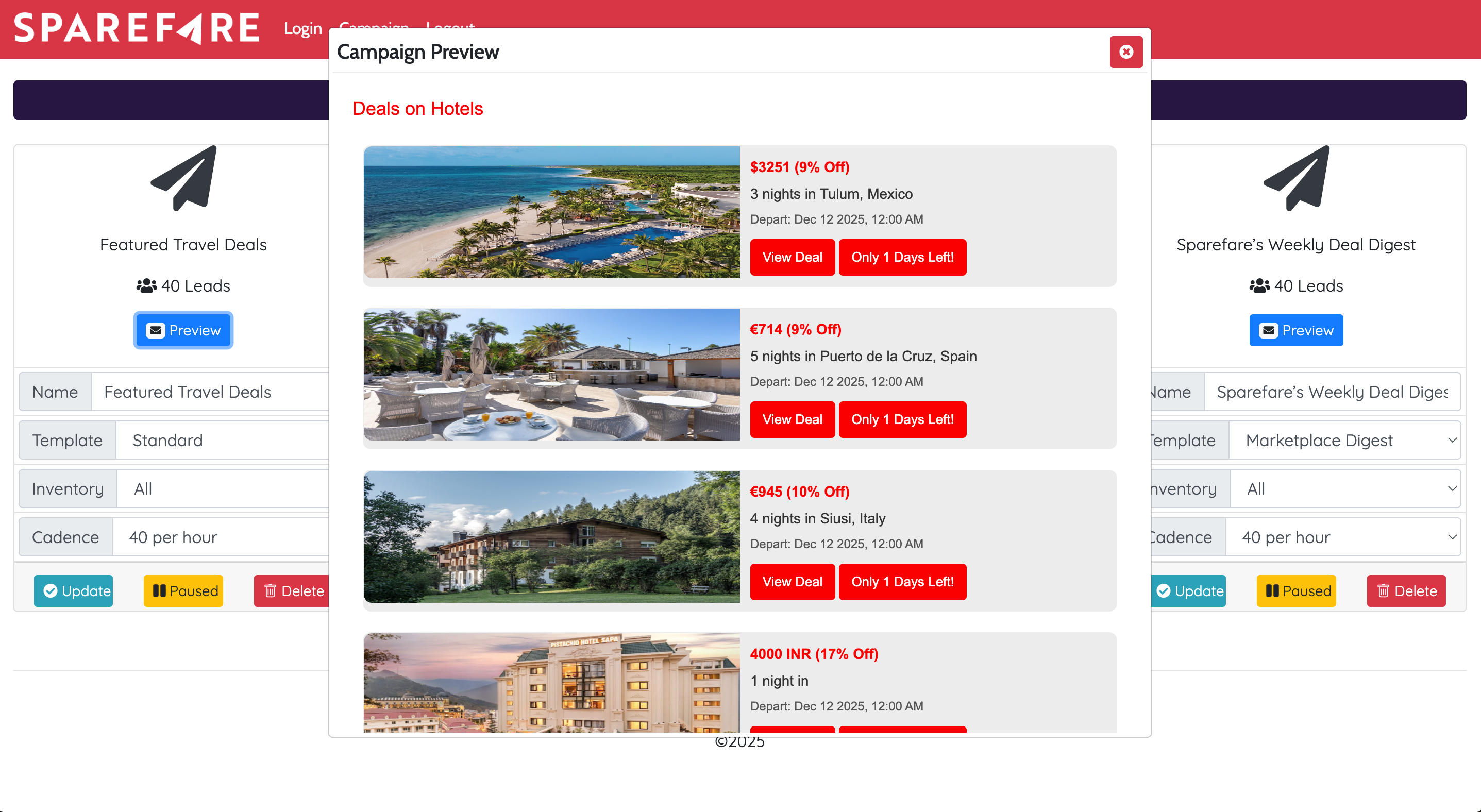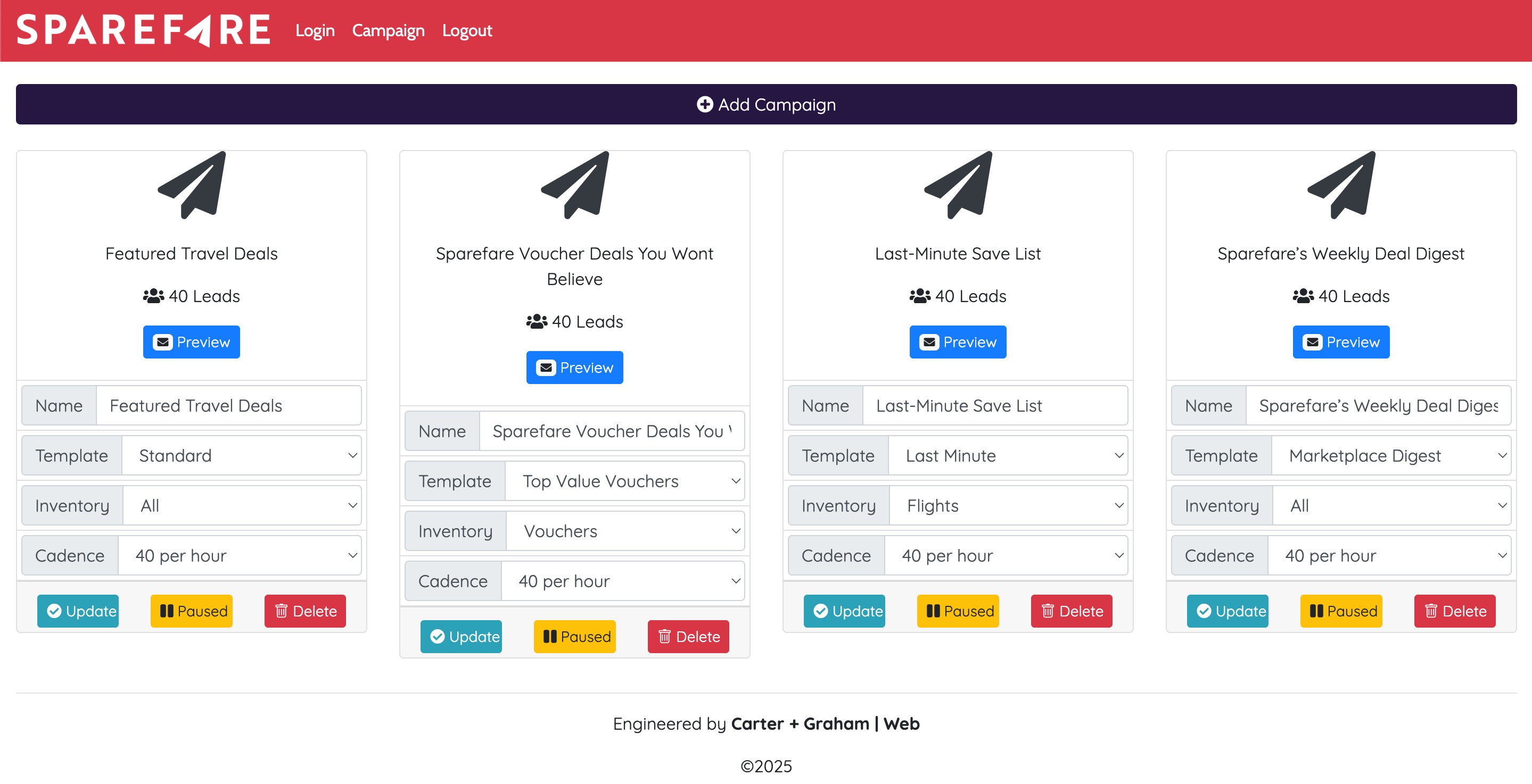 To increase sales by turning 200K leads into customers, SpareFare engaged our strategy, consulting, digital marketing capabilities to commission a platform that capitalizes on that database to generate/send dynamic email campaigns tailored to the individual level, according to seasonality.