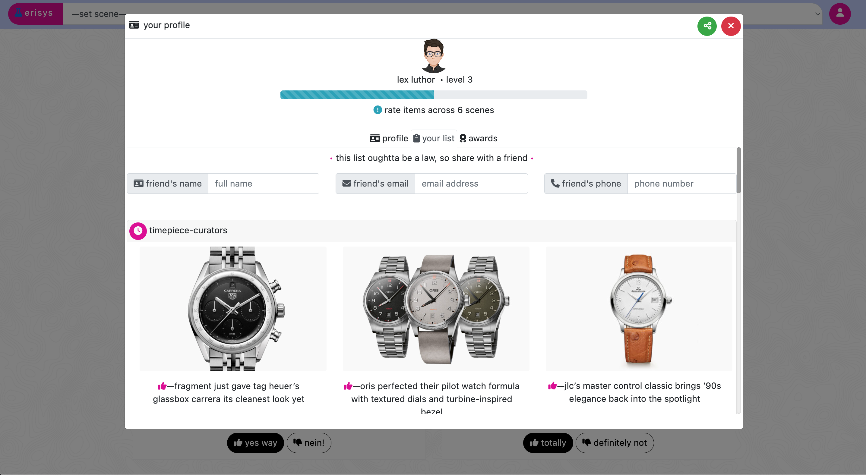 After delivering the recent commission gamify the platform with ranks and medals based on upvote activity, we're now exploring the feasibility of broadening that social dimension with top-10 lists, exclusive clubs, as well as seamless e-commerce for product placements to qualified parters.